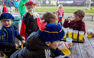 Natuurlijk ging het allemaal fantastisch. Daarna mochten de hulppietjes hun welverdiende diploma én iets lekkers ophalen in de warme kantine. Ook de trouwe trainers werden niet vergeten: zij kregen natuurlijk ook iets lekkers uit de zak van Sinterklaas. Voor de kinderen die kwamen proeftrainen lag zelfs een speciaal diploma klaar — de Sint weet echt alles!